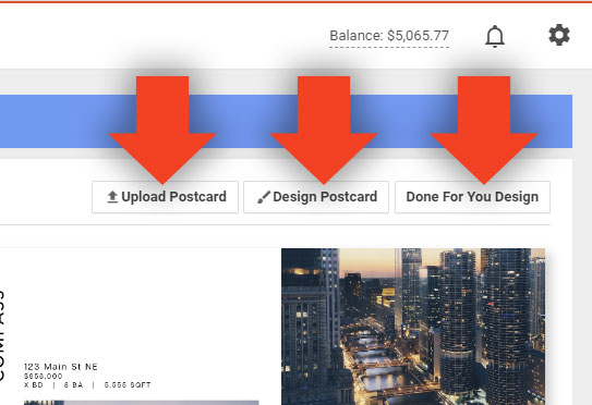 Then, at the top right corner, choose an option to add a mailer design. The buttons are in each section for Postcards, Letters, and folded Notecards.