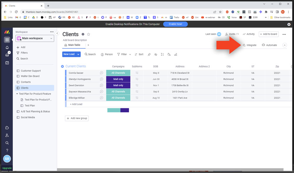 NOTE: Your board in monday.com should have all of the contact information necessary to send mail via the USPS.